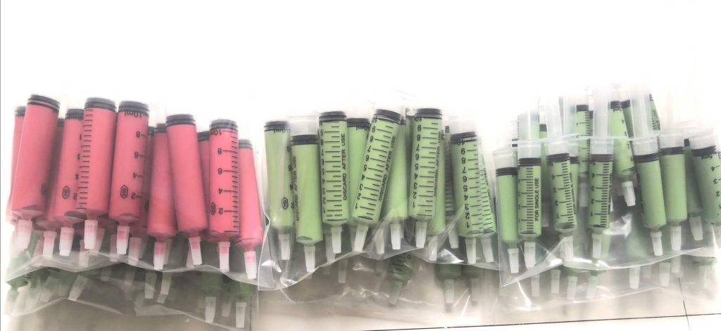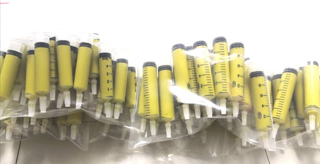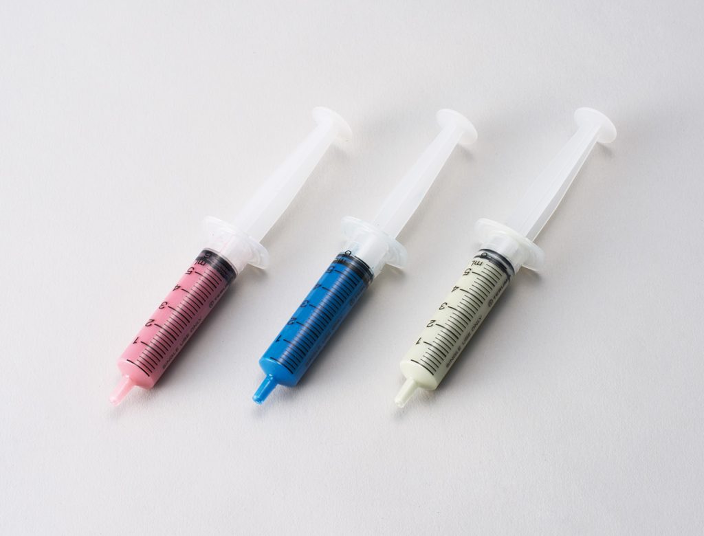 It is filled in a syringe to be used adequately.