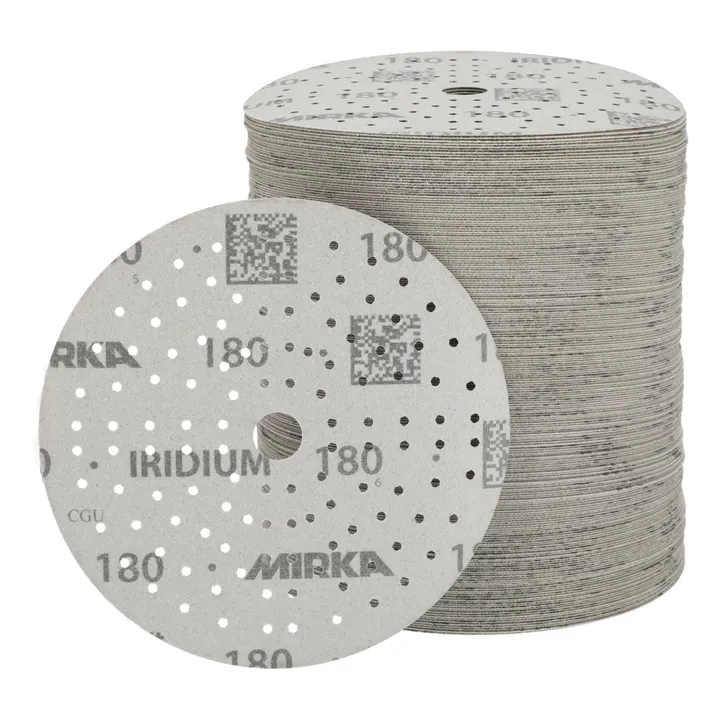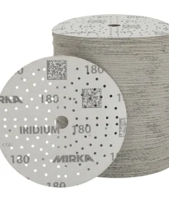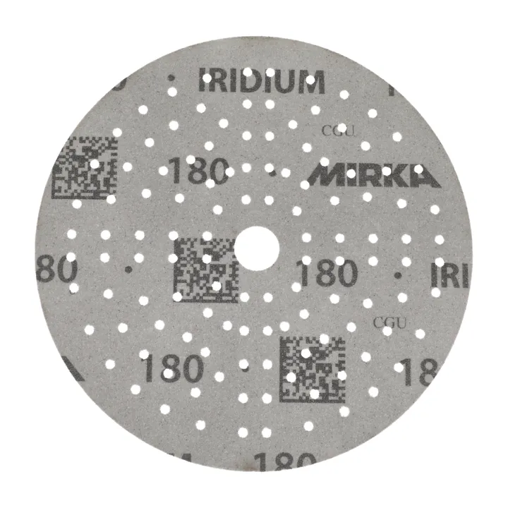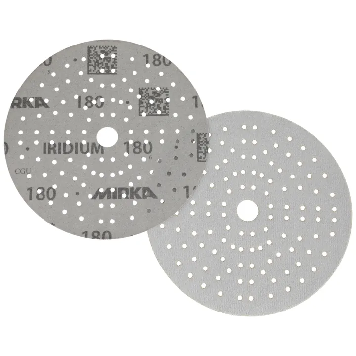 Iridium abrasives in a non-refillable cassette for use with the Mirka® Autochanger system. Iridium is a premium paper abrasive for universal sanding. Perfected for speed and efficiency, it has a mix of ceramic and aluminium oxide grains on a flexible paper with precision coating that prevents clogging and reduces pilling. It practically repels dust and lifetime is increased as the grains stay sharp for longer. Dust extraction is optimised with multihole patterns for discs and strips. Iridium delivers amazing results on both soft and hard surfaces, making it the ideal paper abrasive choice for professionals in any industry.