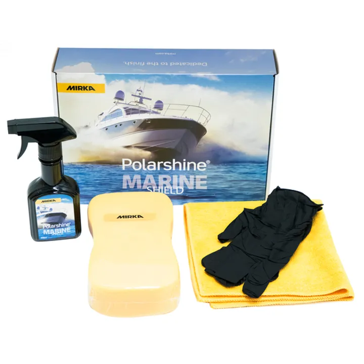 Polarshine® Marine Shield features a ceramic coating, ensuring surfaces are protected from UV radiation, salt water, oxidation, acid rain, bird droppings and other impurities. The Polarshine Marine Shield coating strongly repels impurities and is resistant to strong detergents, allowing you to carry out thorough seasonal washing after the boating season. The surfactant components of the product prevent the water droplets from sticking to the surface, creating a hydrophobic and very high gloss, stress-resistant surface. The Polarshine® Marine series contains the following products: The Boat Wash shampoo, the Deep Clean concentrate, the long lasting Shield coating treatment and the Final Finish detailer. Combined with Mirka’s Polarshine® compounds, these products help you maintain your boat in as-new condition from season to season.