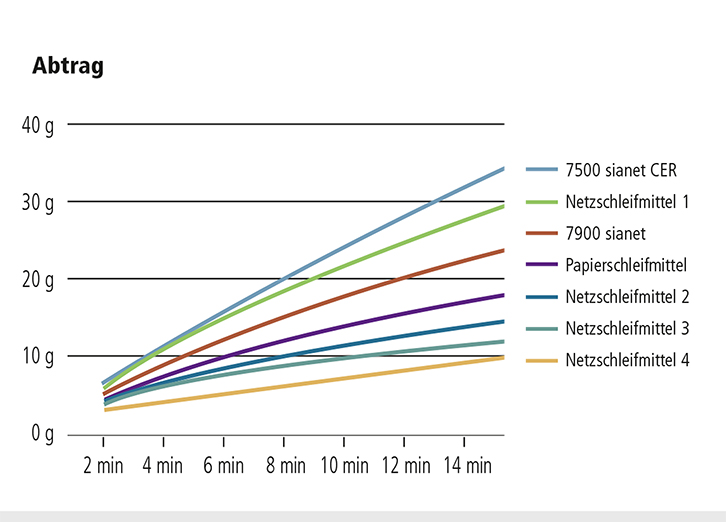 Grit on a net backing enables full-surface dust extraction thanks to the open backing structure. For the first time, this dust extraction ensures a virtually dust free work environment, which is better for users’ health, process reliability is improved and the service life of the abrasive is increased.